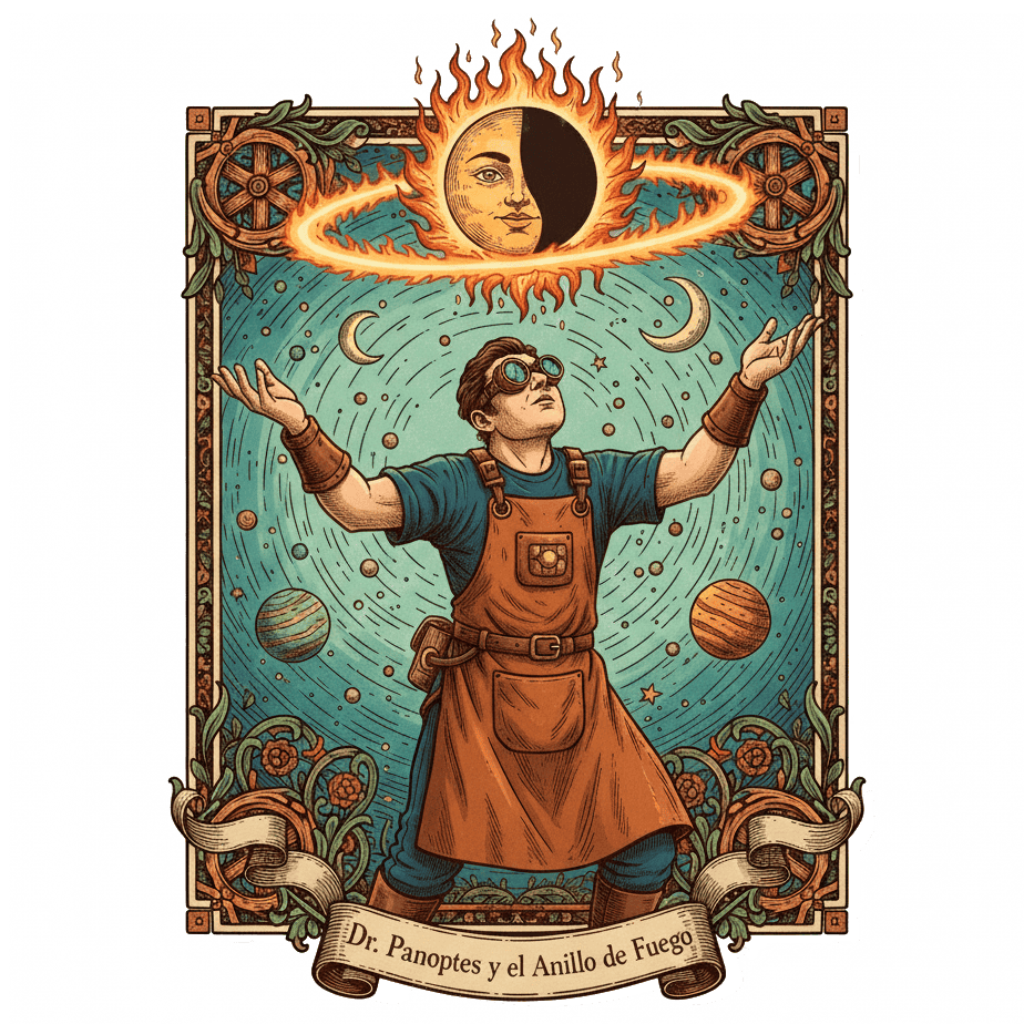 El Dr. Panoptes abre las puertas de su laboratorio para compartir su última obsesión: el Sol. ¿Por qué brilla? ¿De qué está hecho? ¿Y cómo es posible que, por unos breves instantes, la Luna pueda ocultar su poder y transformar el día en noche?. El espectáculo, con un toque de humor, se centra en desentrañar principios fundamentales del Sol y los eclipses a través de varios experimentos divertidos y sorprendentes. Es un espectáculo interactivo, con mucha participación del público, que tiene como objetivo enseñar, pero también entretener y poner en valor el gran eclipse de 2026.