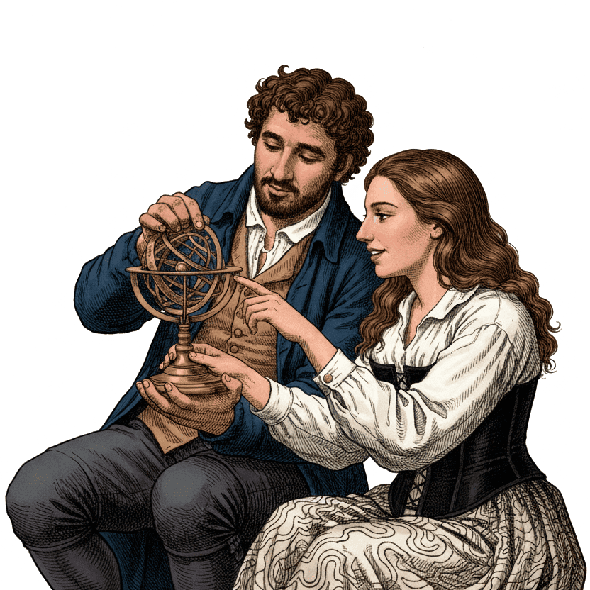 Durante la primera hora, haremos un viaje desde la primeras representaciones astronómicas hasta la invención del telescopio, descubriendo el astrolabio, la Azafea, la esfera armilar entre otros muchos ingenios. Aprenderás sus principales usos y realizaremos prácticas con réplicas de instrumentos reales.