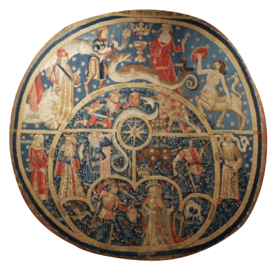 Representación central del tapiz del astrolabio, donde se observa la araña del astrolabio.
